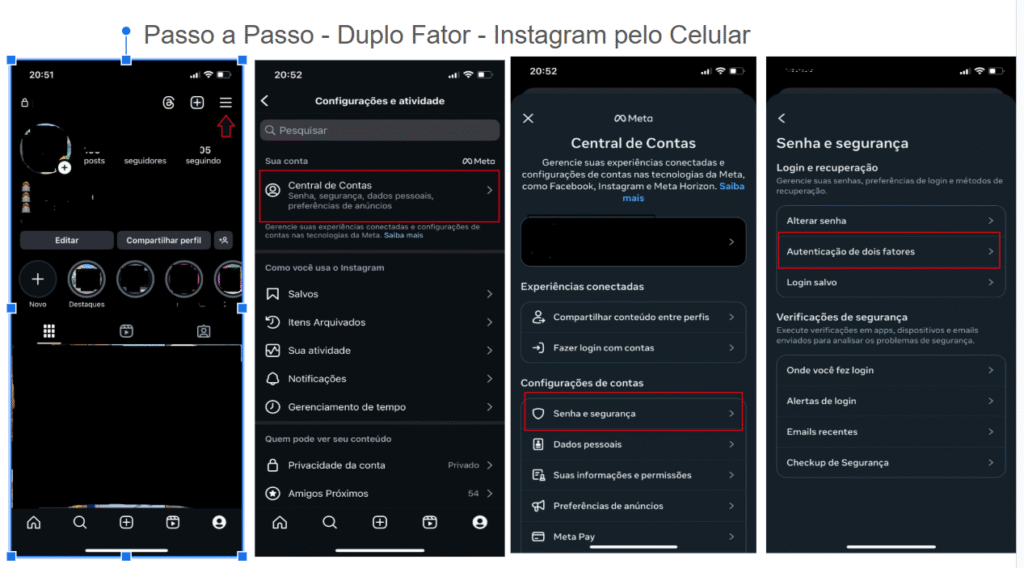 - Acesse a Central de Contas: No seu perfil do Instagram, toque no menu (três barras) no canto superior direito e selecione “Central de Contas”.